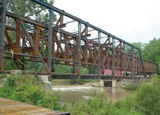 這座印第安工廠橋最初建于1913年,跨度為177ft.(約53m),單車道,采用雙腹材普拉特下承式桁架。橋梁性能日漸退化,直到它引起了懷安多特縣的工程師Michael B. Kohl的注意。鑒于這座橋梁的特殊位置,Kohl啟動了一個項目來考察如何對該橋梁結(jié)構(gòu)進行保護。俄亥俄州曼斯菲爾德的一家土木/結(jié)構(gòu)公司——Richland工程有限公司被選中進行修復(fù)方案的制訂,并最終給出了橋梁的修復(fù)方案。